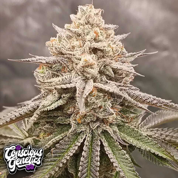 The upgraded Orange Runtz Cake showcases an exceptionally high-yielding phenotype of the Orange Runtz Cake adorned with vibrant purple hues. This particular phenotype, meticulously selected by the Conscious Genetics team, has undergone a careful pollination process with the Zapplez #10 phenotype. The resulting phenotypes are characterized by milder orange terpenes compared to the 1.0 version, accompanied by the addition of delightful creamy orange notes.